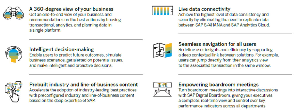 SAP S/4 HANA can make things faster by running processes in memory. SAP HANA software applies its speed to a simpler data model, eliminating redundancies that are common in application design. As a result, you run transactions and analytics from the same data model without having to separate OLTP and OLAP.
