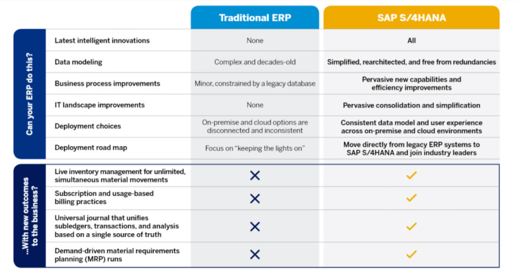 SAP S/4 is built on revolutionized SAP S/4 HANA Database.